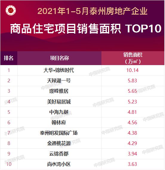 特别声明:房地产企业销售数据统计是以2021年1月1日-5月31日期间销售的商品房为统计口径,主要依据CREIS中指数据在泰州市的销售监测数据,并参考企业提供的相关数据,经课题组严格审核纳入统计。本报告仅供参考,课题组不对使用报告及其内容所引发的任何直接或间接损失承担责任。