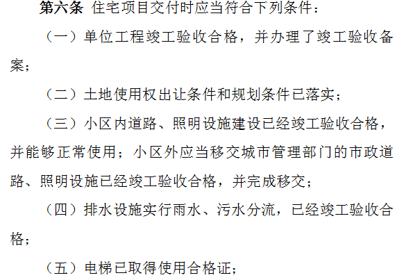 住宅项目交付时应当符合下列条件: