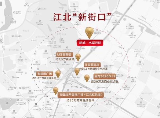 坐拥江北“新街口”商圈的醇熟商圈。现有慕斯荟、红星美凯龙、东方万汇城、明发盈座、金盛田广场等优质商业,未来将有江北虹悦城、城南茂商业广场等大型商业,满足一站式生活需求。