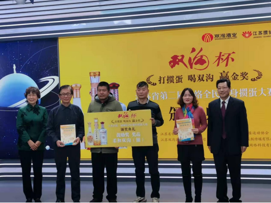 江苏省体育局局长陈少军、副局长熊伟、省体育总会副会长兼秘书长李一冰、省掼蛋运动协会会长漆冠山、省掼蛋协会副会长陈福亚、洋河股份总裁助理、江苏双沟酒业销售有限公司总经理张学谦等出席颁奖仪式,并为冠军1人、亚军2人、季军3人、鼓励奖4人、参与奖50人代表颁奖。