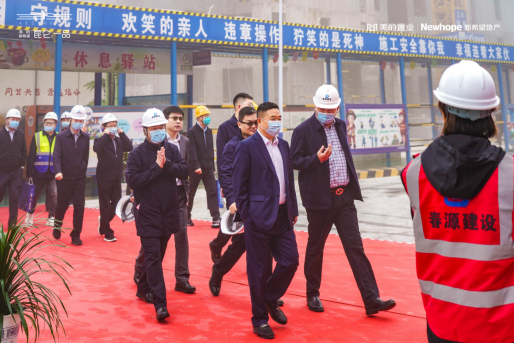 在听取了项目目前的进展情况汇报后,林市长一行随后到M.art高定实景园林示范区及施工现场了解情况,仔细询问了施工过程中的环节程序、材料供应、工期要求和工人生产保障等细节问题,并对昆仑一品项目的精工细节做了高度赞许,特别是美的新希望·昆仑一品打造的石材外立面,天然石材加铝线条附上仿石漆,相比以往传统的涂料外立面,不仅质量更好,还实现了美感追求,是建筑美学与居住品质的完美结合。此外,考察组对设计理念、新材料的应用以及绿色施工等给予一致好评。